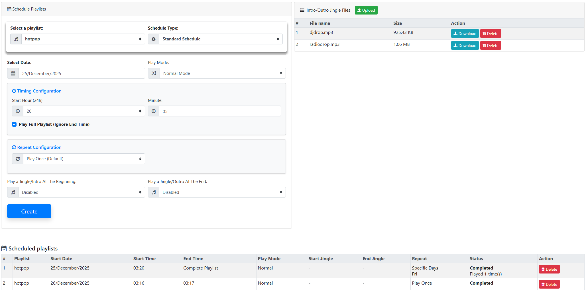 Na prática, isso significa que jingles, vinhetas, programas diários, blocos especiais ou até playlists temáticas passam a ser tratados como playlists comuns. O usuário cria essas playlists normalmente e define exatamente quando, como e com que frequência elas devem tocar.